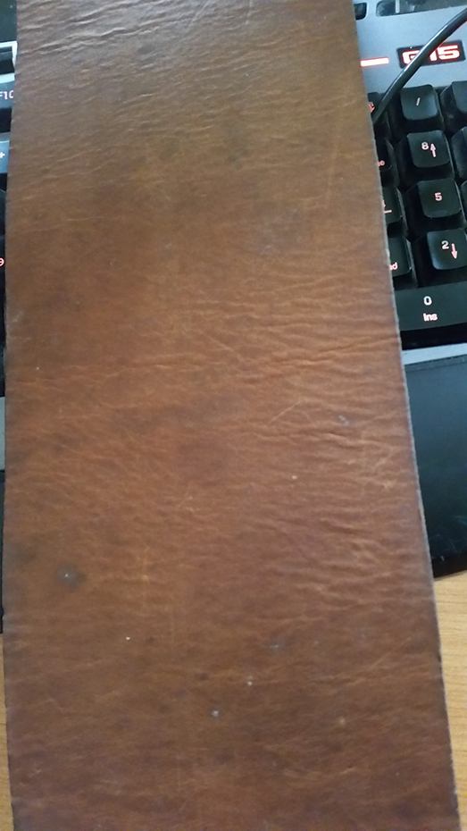 Я вот тоже экспериментировал с таким вот "квадратным метром", купленном по случаю. И поначалу не смущали вот такие пятна. Добавлено спустя 2 минуты 21 секунду: Потом оказалось что это свинина в обработке хитрого дядюшки Ляо. Пятна это следы пучково-растущей щетины. А дубление чистый бихромат калия, даже не отмытый после из кожи. Добавлено спустя 2 минуты 24 секунды: Поры от щетины были тупо затерты густой краской. И пошла та кожа на другие (не бритвенные) цели. 32 года активно мусолю харю клинковой бритвой
