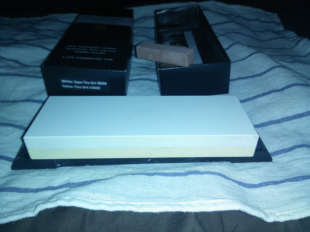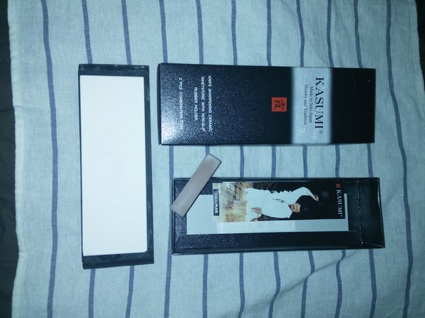 японский камень kasumi гритность 3000# - 8000#, цена 3500 половина от изначальной. В комплекте родная нагура которой не стоит пользоватся НИКОГДА. коробочка, листочек с самураем ^_^, подставка. На 8000 стороне по углам одной стороны есть 2 скола, при выравнивании на стекле аккуратнее. Продается как есть, доставка +5$, находится в Мск. Причина: у меня с ним нифига не получается... Перешел на фрикционит + бельгиец.