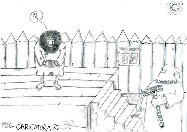 Олег Бритва, анекдот (про парикмахерскую), судя по всему, с политическим подтекстом.