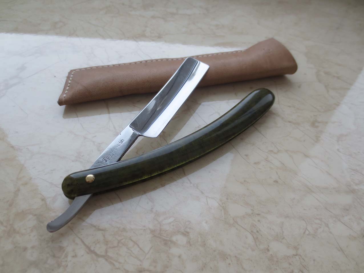 Прекрасная чистая бритва , обладает мягким и приятным резом. Ширина 5\8, очень удобный размер для освоения этого истинно мужского занятия. Бритва заточена и полностью готова к работе. Кожаный чехольчик для хранения. Spoiler Show