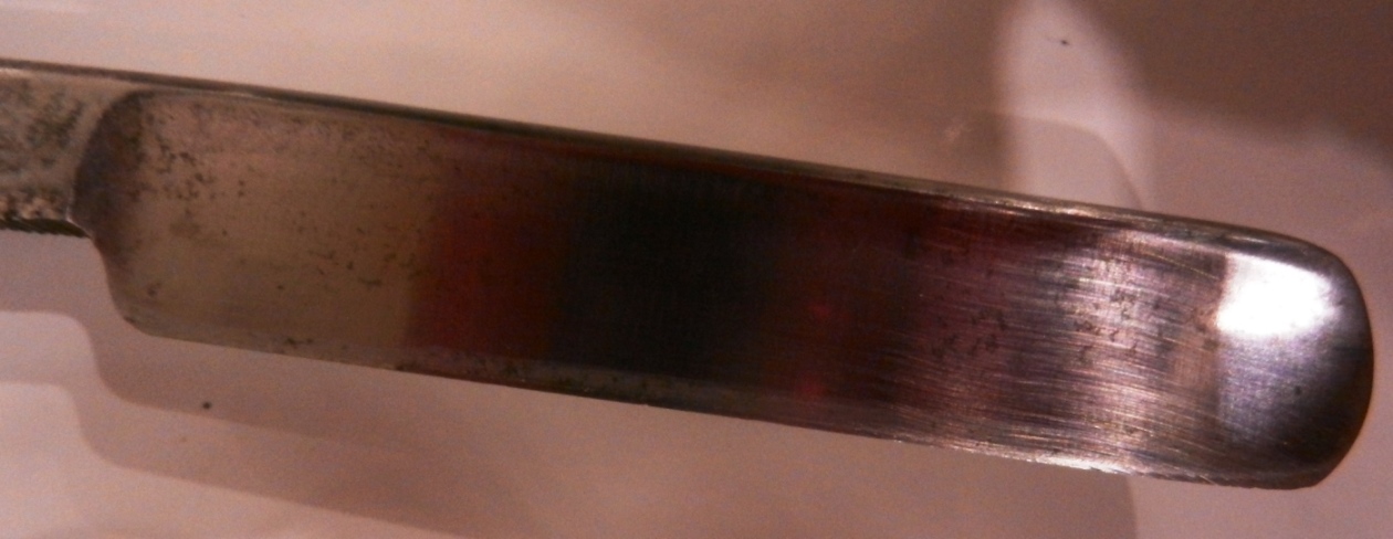 опять же фото На другом фото отчетливо видны продольные следы от абразива и следы заточки Из этого всего, на мой взгляд, бритву неумело готовили к продаже, тем самым привели в еще более худшее состояние, чем было. Перестаньте тереть, не успеваю выделять смазку !!!