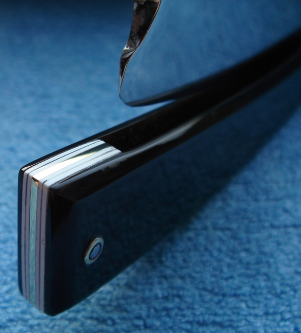 Re: Бритва до... и после...Немного взбодрил вот такого понтового японца. Предыдущий владелец ,с дуру, чтобы снять ржу и патину, прошёлся грубой шкуркой вдоль полотна, чем оставил глубокие царапины. Пришлось тут немного попотеть...