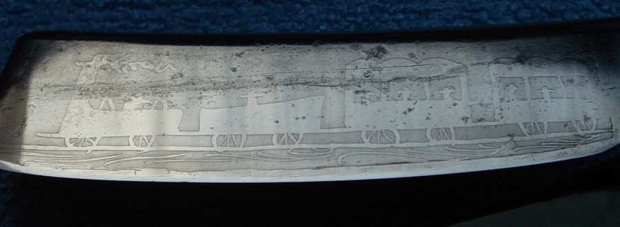 Re: Бритва до... и после...Немного взбодрил вот такого понтового японца. Предыдущий владелец ,с дуру, чтобы снять ржу и патину, прошёлся грубой шкуркой вдоль полотна, чем оставил глубокие царапины. Пришлось тут немного попотеть...