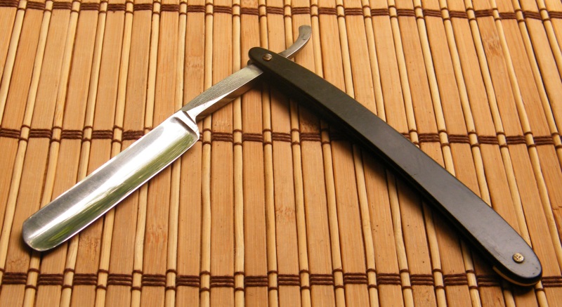 Есть подозрение, что бритва сильно уточена (это снизит её цену), однако, судя по соотношению ширины полотна и ширины ручки, впечатление может оказаться обманчивым.