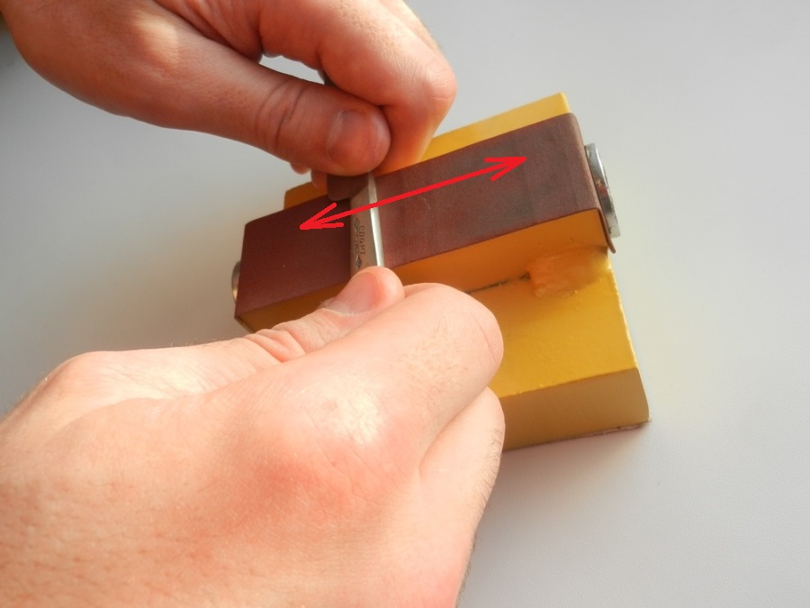 приспособа годная - более того есть возможность её творчески развить, сделав 2- с к круглой поверхностью для замены пробки - которую многие используют для зачистки полотна бритвы