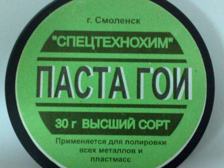 Паста Смоленская лажа, наносится на ремень хорошо, но не все так просто, она тягучая, бритву не протащить, не сохнет гадость, не советую, еле содрал с ремня, только на круги шлифмашинок с оборотами нормальными, и то остается вязкий след на металле, как на основе керосина