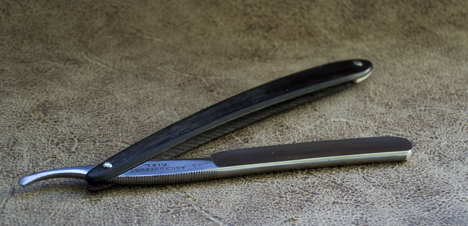 Немецкая бритва из шеффилдской Silver Steel от Kayser Ellison. Ширина 9/16 (14мм.) Вогнутость - квартер, роговая рукоять. Отличная верткая бритва, подходящая для окантовки висков, усов и бороды, так и для полноценного бритья любых территорий. Luneburg и Kiel города в Германии, причем расположенные довольно далеко друг от друга, здесь говорится что AUG. Luneburg, Kiel это дистрибьюторы, поэтому установить реального производителя нет никакой возможности, но бритва по-простому хороша, прекрасная геометрия и углеродка Сильвер Стил от Кайзера Эллисона. AUG. Luneburg, Kiel Show Spoiler Show