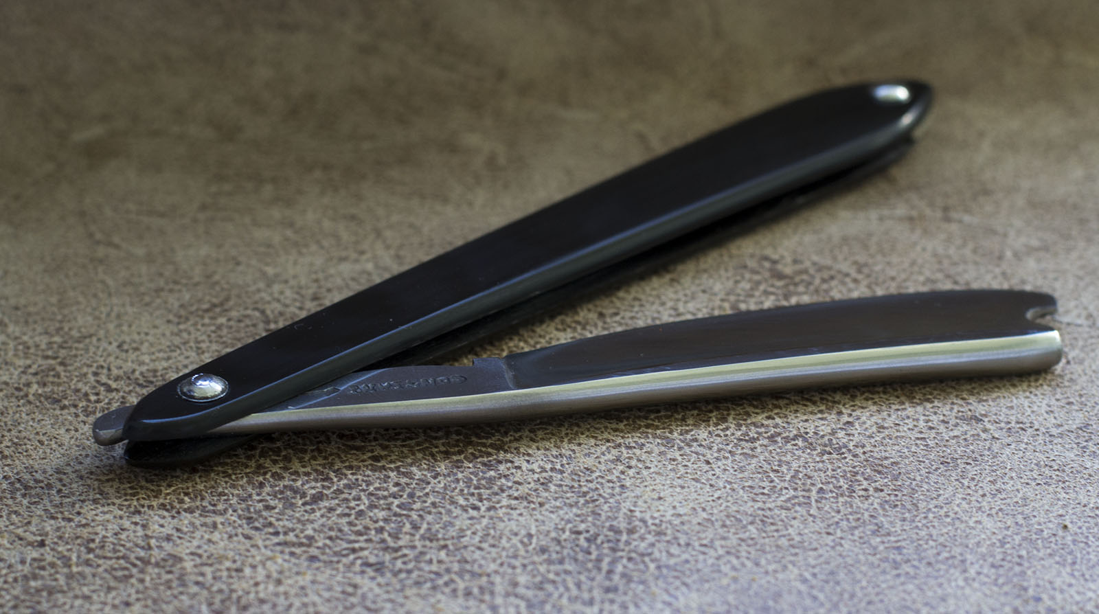 Отличный французский фреймбэк. Ширина немного не дотянула до 6/8, в самом широком месте 18.5 мм. Родная роговая рукоять, с костяным клинышком, бритва заточена и готова к бритью. Продано. Spoiler Show