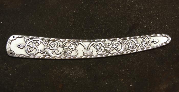 Но потихоньку, в осознанием процессов, втянулся и всё-таки сделал. Я не спец по такого типа работам, поэтому первая работа далась диким терпением, снимал лак и краситель 4 раза и тонировал и покрывал лаком снова. Получалось не то что хотел. Но вроде справился, хочу поделится. Тема такая - есть две бритвы DOVO и Thiers Issard. На DOVO ручка родная (модель такая). Задача поставлена заказчиком сделать на Thiers Issard в этом же стиле, а головку обеих бритв как на рисунке ниже: Вот что получилось. Бритвы режут волос и на повороте, до самого кончика. Чтобы кончик править, надо пройти обучение у меня. Ну и всё остальное (большой пин с орнаментом на ручке моего производства): Spoiler Show Ремонт опасных бритв, звонить с 11-00 до 23-00, +79267729357, (viber, whats app, telegram, VK), спросить Олега.