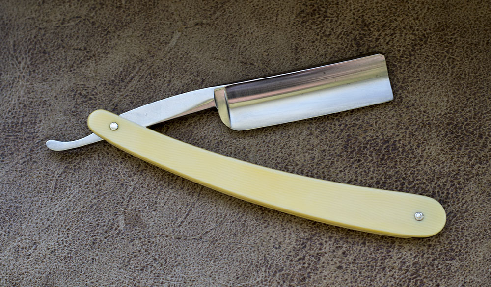 Отличный французский фреймбэк. Ширина немного не дотянула до 6/8, в самом широком месте 18.5 мм. Родная роговая рукоять, с костяным клинышком, бритва заточена и готова к бритью. Продано. Spoiler Show