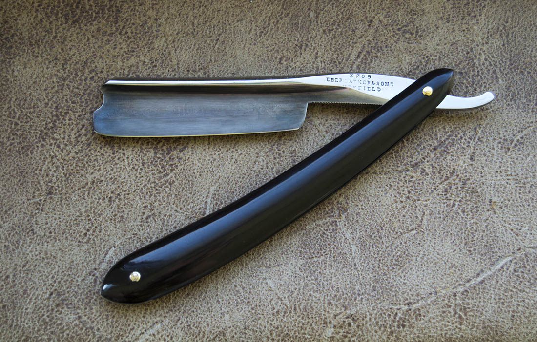 Старый фрейм из Шеффилда, ширина 7/8, роговая рукоять в отличном состоянии. Есть родной кейс на 2 бритвы, но из двух осталась лишь одна. Бритва без каких либо признаков использования, точилась мной впервые, заводское воронение + Травление Silver Steel. Подновил воронение, в результате травления с надписью почти не видно. Продано 3709 Show