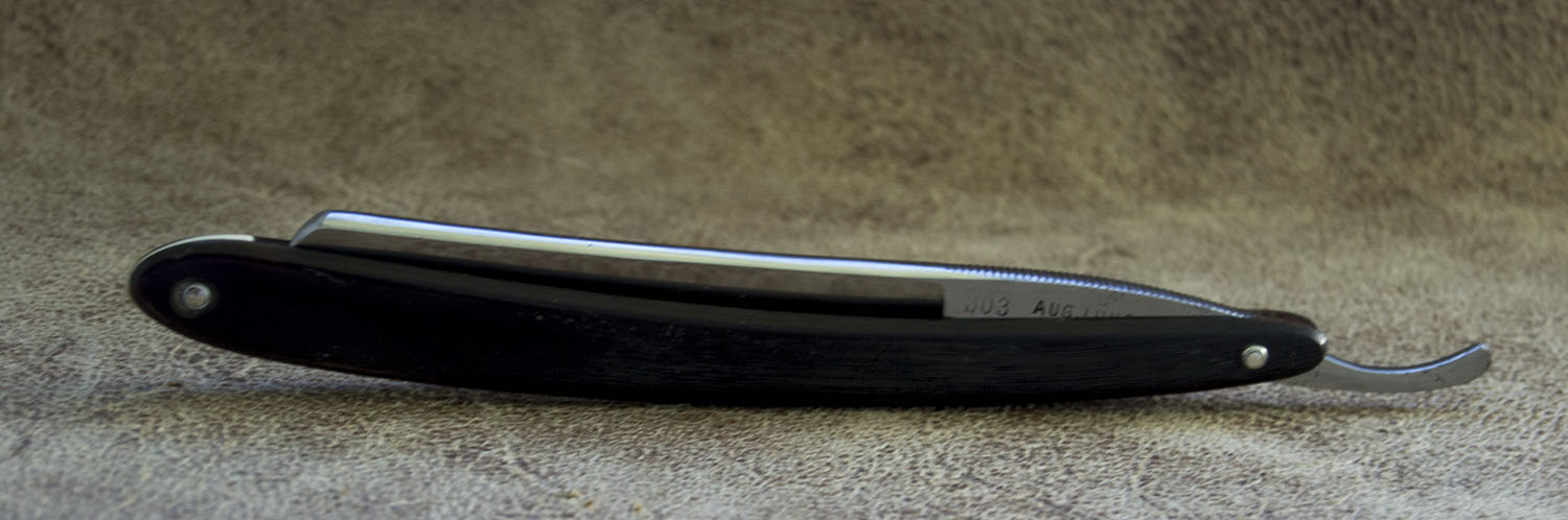 Немецкая бритва из шеффилдской Silver Steel от Kayser Ellison. Ширина 9/16 (14мм.) Вогнутость - квартер, роговая рукоять. Отличная верткая бритва, подходящая для окантовки висков, усов и бороды, так и для полноценного бритья любых территорий. Luneburg и Kiel города в Германии, причем расположенные довольно далеко друг от друга, здесь говорится что AUG. Luneburg, Kiel это дистрибьюторы, поэтому установить реального производителя нет никакой возможности, но бритва по-простому хороша, прекрасная геометрия и углеродка Сильвер Стил от Кайзера Эллисона. AUG. Luneburg, Kiel Show Spoiler Show