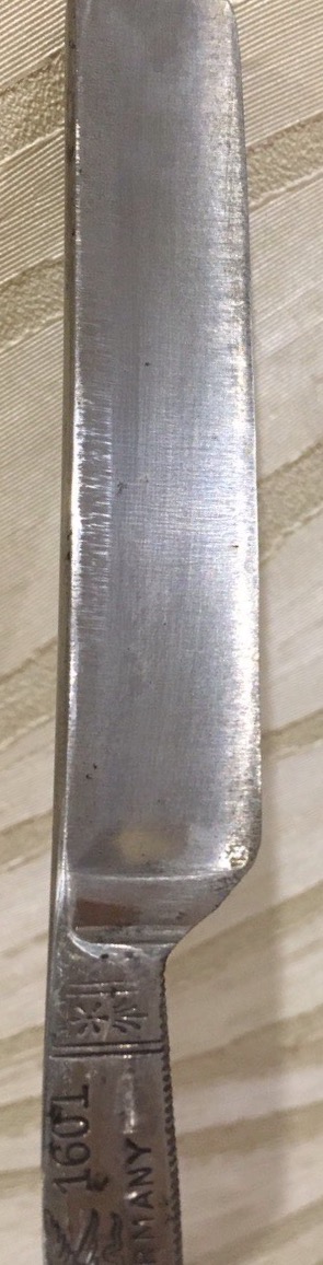 Так толщина и будет одинаковая. Что ты можешь тогда сказать об отсутствии пятки, отсутствии ярковыраженной ступеньки? Добавлено спустя 3 минуты 59 секунд: Хотелось бы помотреть, как можно точить такую бритву, с такой же вогнутостью, что грубые риски идут поперек всего полотна, даже в середине. Re: Zwillingswerk и ERN. Просьба оценить.Пробую добавить ещё фото, надеюсь будут более информативными.