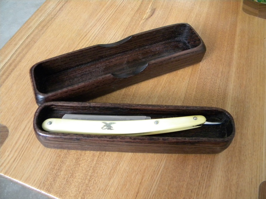 Re: Футляр для опасной бритвыВот есть такой скажем полочный футляр, правда еще не готов, нет лака, только грунт и не знаю чем заморочить ложе для хозяйки