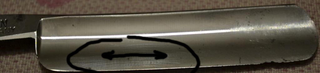 Re: Чем снять ржавчину и сохранить рисунок?Эту паутинку не стоит трогать. Кромку не задела, и хорошо. Наждачка все равно не уберет ее до конца. Главное, чтобы каки не было. Будет тебе бритва с аутентичностью.