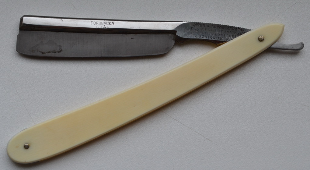 уралец: Что за производитель Erik Anton Berg? Предложили старую бритву от него,ручка ,похоже, неродная ,но само лезвие в очень хорошем состоянии, без всяких следов ржавчины, но и следов предпродажной подготовки нет, лезвие темное. На лезвии ряд (Штук восемь) золотых медалей и четкое клеймо рыбы,видимо акулы. Ширина лезвия ,скорее всего, 6(8 дюйма Может кто подсказать. что это зв бритвы, то в поиске не нашел?