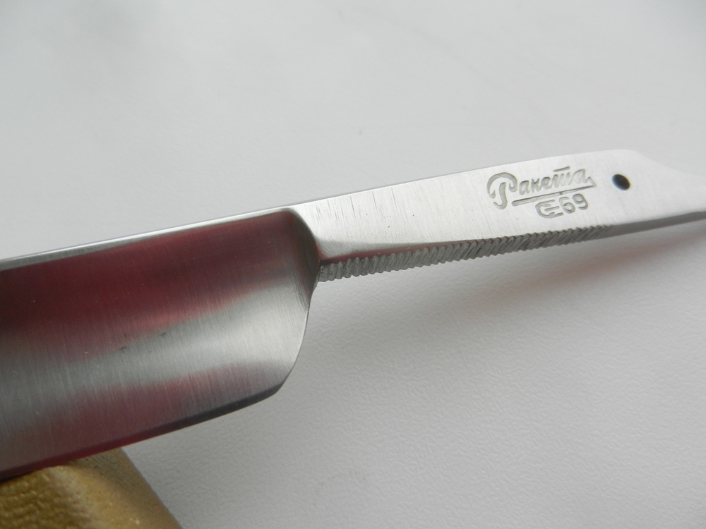 Если я правильно понял, что ты имеешь ввиду, то все это само встанет на свои места при заточке. Да, возможно РК получится разной ширины, но это уже зависит от геометрии клинка и для советских бритв это данность. Ржавчины нет, осталось пару черных точек....их конечно уберу