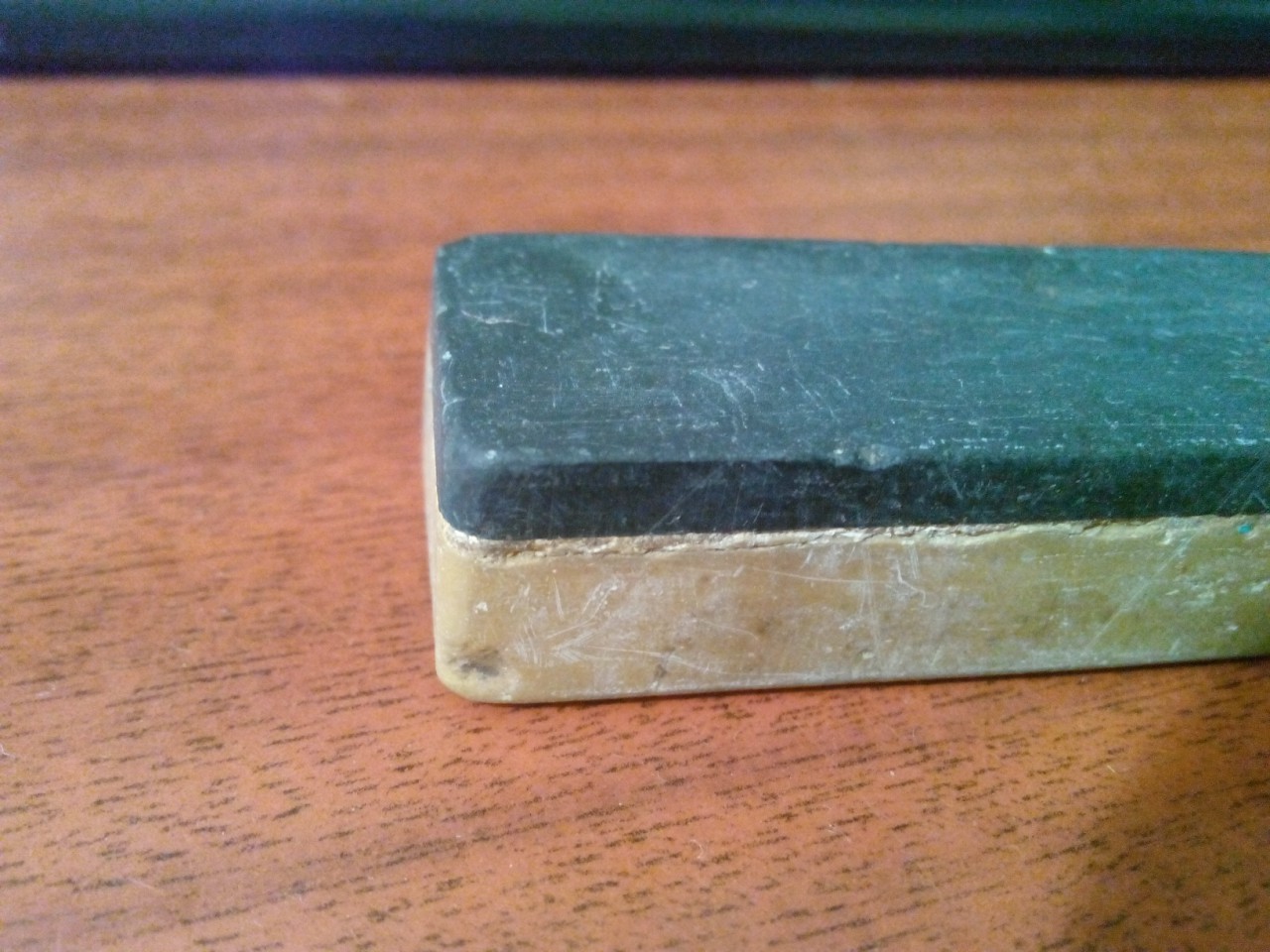 GRAFodua Три камня сравнивали по моей просьбе и в се по разному работали. А подложка черная или бордовая? на фото рассмотреть не могу, читал, что в последнее время шиферный сланец клеют ибо бордовый стали отдельно продавать. Вот, под рукой лежали желтый слой разный, подложки одинаковые, хотя я видел бордовые разные по фактуре. На бордовых говорят иногда тонше заточка получается так, что имейте ввиду, тока если она черная то там сланец какой то, не пригодный для бритв. Re: Помогите определить каменьО интересно буду почитать. Придётся его восстановить. Буду вникать..