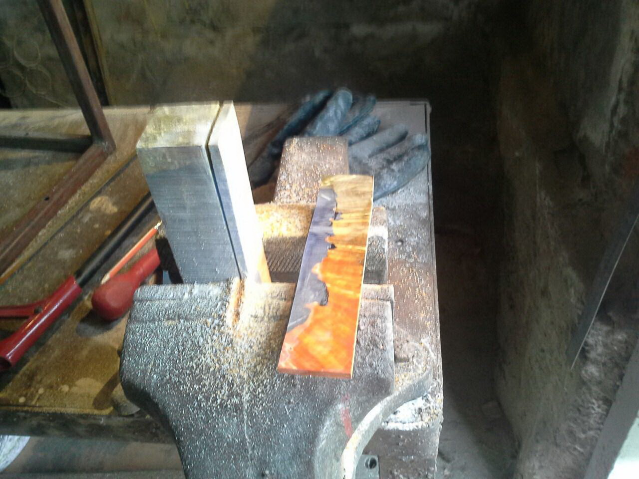 Дизайн, идея, чертежи, подбор материалов - Toivo Мы с GVIk немного помогли воплотить это в жизнь. Сталь та же О1 Ширина 6/8, почти клин, длина режущей кромки 50мм Расчитана на бородато - усатых дядек. В руке довольно удобно. Ручка - гибрид (стаб береза с акрилом) понравился в работе. Очень легкий и приятный материал.