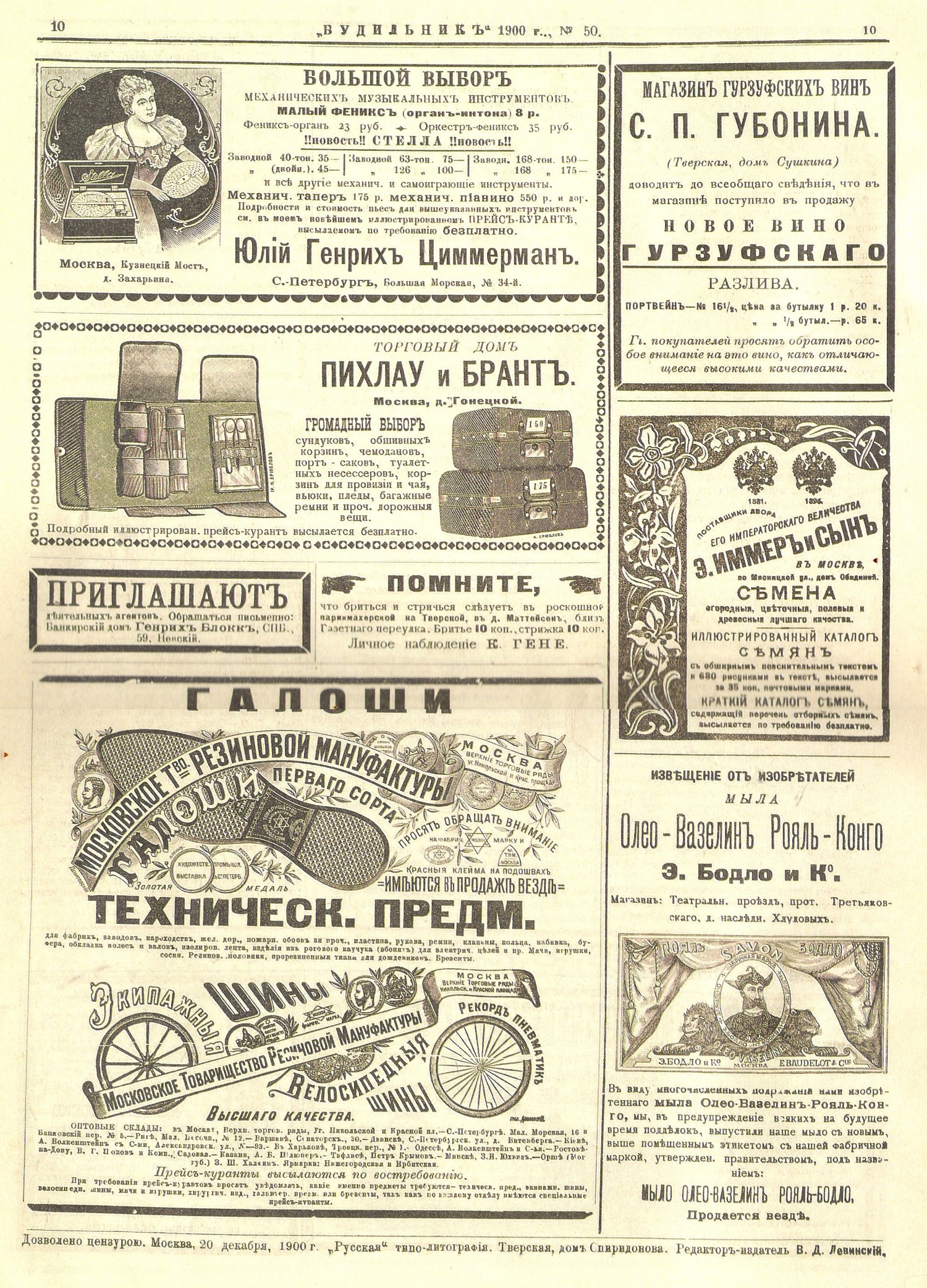 "встревоженный Морозов помчался на Петровку, в магазин Пихлау и Бранта, купил целую партию меховых курток - их хватило на всех арестованных студентов Московского университета" Хо-Хо! http://5ka.su/ref/history/2_object30169.html" onclick="window.open(this.href);return false; Торговый дом Пихлау и Брант Москва, дом Гонецкой Громадный выбор сундуков, обшивных корзин, чемоданов, порт - саков, туалетных несессеров, корзин для провизии и чая, вьюки, пледы, багажные ремни и прочие дорожные вещи. Источник: http://sobralio.net/humor/?q=node/25" onclick="window.open(this.href);return false; Бритва эта - скорее всего из "туалетныхъ несессеровъ" Spoiler Show http://newspaperarchive.ru/article.php?id=9293" onclick="window.open(this.href);return false;