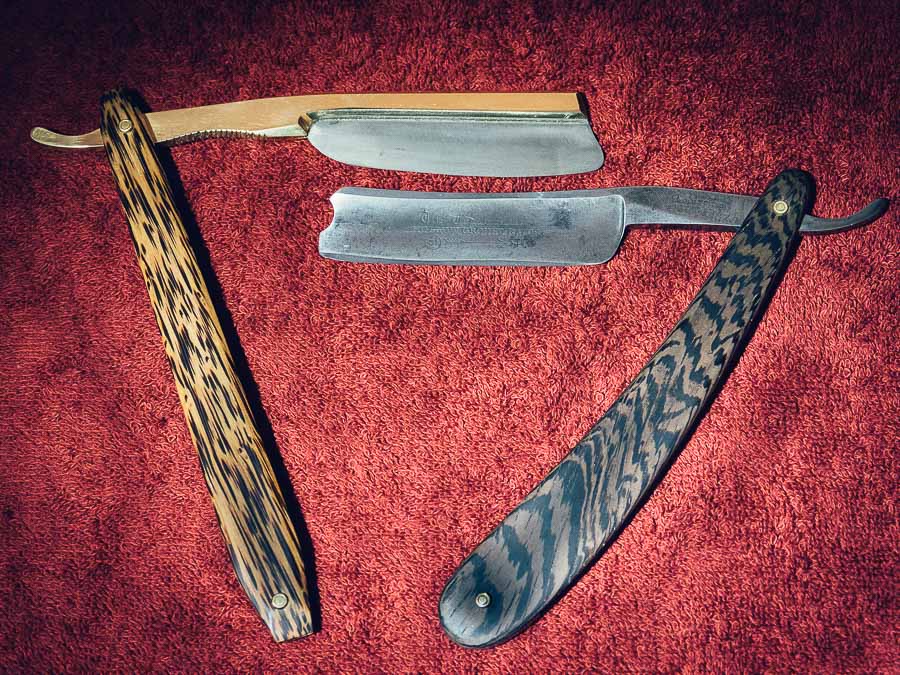 Re: Вопросы по бритвам типа Фрэймбэк (Frameback)При восстановлении бритв почти всегда меняю весы (ручку), использую косой срез древесины, самостоятельно стабилизирую (что-бы воды не боялась). На фотографии косой срез древесины пальмы, на Ботчере срез венге. Рог использую только по заказу. С костью не работаю.