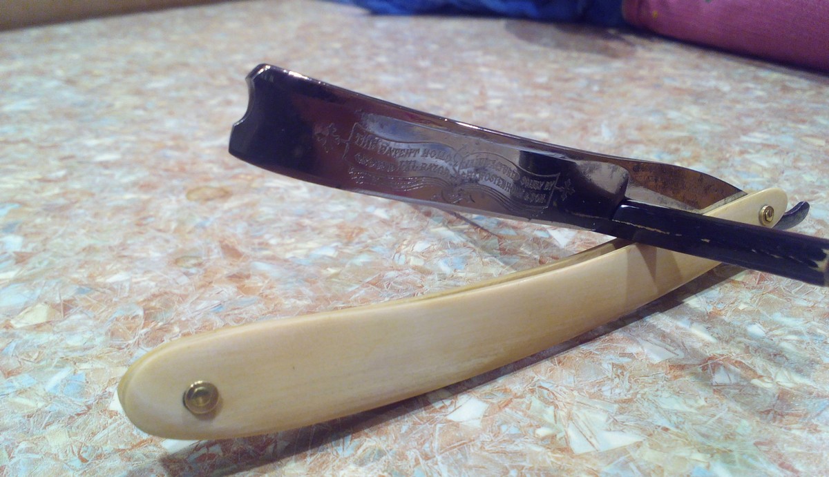 Выписал себе немного работы.Работа приятная...жалобиться не чего. Мистер Востерхольм по описанию продавца имел деревянную оправу.По прибытию выяснилось что оправа пластик под дерево. Восстанавливать не стал,а решил одеть Жору в старого слона. Не ради амбиций, а очень хотелось помацать мамонтенка. От самого мамонтенка у меня в наличии только кора бивня, поэтому использовал ее.По толщине на накладки только-только хватило,пока выровнял до пластин. Материал приятный во всех отношениях,хорошо обрабатывается и полируется в зеркало,только вонюч очень Оправу делал аутентичную по форме родной,ну или той,что была. Следы времени на клинке решил оставить. На фото бритва еще не заточена. Боишься - не делай, делаешь - не бойся, а сделал - не сожалей.