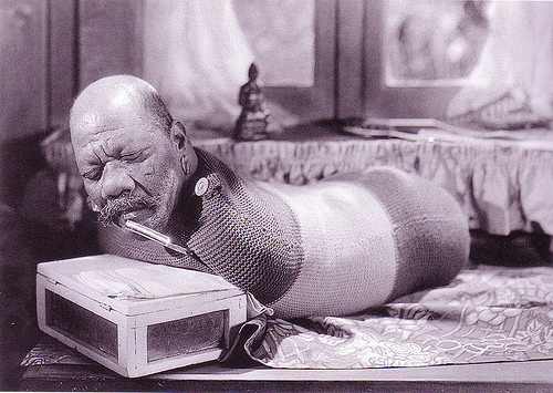 Prince Randian /1871-1934/. Рисовал, писал, мог побриться. Говорил на английском, немецком, французском и хинди. взял здесь: http://mi3ch.livejournal.com/1280930.html" onclick="window.open(this.href);return false;