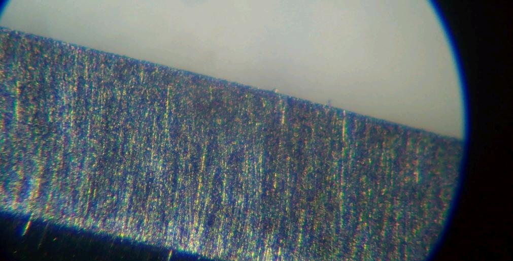 Re: Японские натуральные водные камни, и их свойствапопробовал еще одну заточить, но уже не 1/4, а холлоу, поймал чутка паразитных рисок - видимо излишне давлю, надо нежнее. Но так же после чистого камня резала волос в сантиметре, чистый ремень 20 проходов и на морду, вполне приемлемо побрился. Буду осваивать технику на этих камнях, пока очень нравятся. При попытке натереть тенджу (ента нагура у меня самая твердая, далеко не сразу дает суспензию и на гуанси), получаю больше суспензии камня, но кома натирается легко. Причем самое интересное - это сама полировка кромки, результат в корне отличается от всего того, что я пробовал до этого. ЗАвтра попробую сделать несколько снимочков в микроскоп.