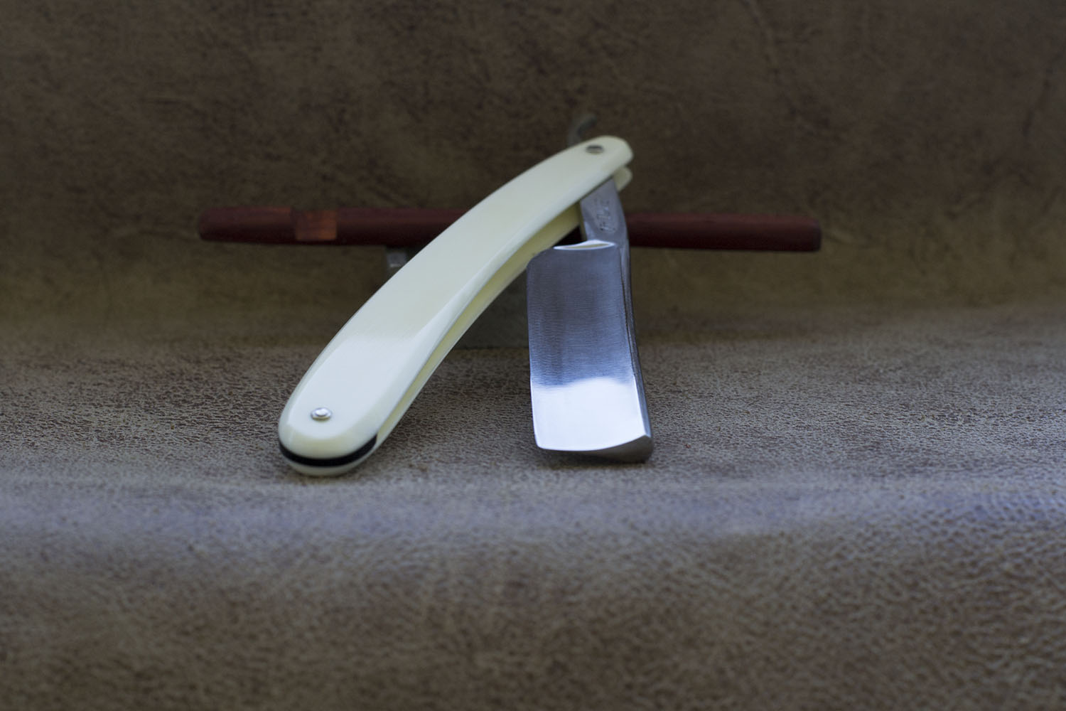 Редко встречающаяся марка бритв из Шеффилда. Ширина 6/8, вогнутость полная или правильнее сказать 3/4, хотя разница между минимальна, эластичная режущая кромка, прекрасная мягкая сталь, новая рукоять из кости верблюда. Бритва заточена и готова к бритью. Одна из немногих бритв, протестированных мной лично - дала очень приятный результат в бритье полутора недельной щетины, причем сохранила достаточную остроту и прошла после бритья тест на рез волоса, рекомендую как новичкам, так и коллекционерам. Продано. Spoiler Show
