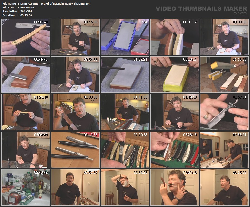 ~ DVD ~ Cut throat razor enthusiast, Mr Lynn Abrams is a well known identity in the world's razor scene. As a 30 year plus straight razor shaver (cut throat razors are known as 'straight razors' in the USA), and the founder of the original Web-based Razor Place ( an internet forum and support group for razor enthuisiasts), he has also honed over 7000 razors for people all over the world who lacked the skill and were unable to 'hone their own'. But this DVD, with it's 3 ½ hours of instruction and demonstration, should solve that problem for you. Presented in eight sections, 'chapters' include honing, stropping, shaving demo, E-bay buying, introduction to mugs, soaps, and brushes, cleaning razors, soaps, mugs and brushes, buying a razor, and a look at some of Lynn's own razor collection. A remarkable DVD, and likely to become the most important shaving tool, after your razor of course! $39.00 plus $5 post (or $7 Express) across Australia. (International quotes for airmail provided.) www.knivesaustralia.com.au/knives.html - можно купить тут. Ремонт опасных бритв, звонить с 11-00 до 23-00, +79267729357, (viber, whats app, telegram, VK), спросить Олега.
