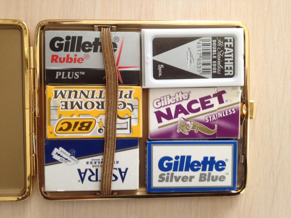 Информация больше для москвичей. Занесло меня в субботу со своими тетками в торговый центр "Дубровка", что у одноименной станции метро. Они побежали по своим барахольным делам, а я так погулять пошел. Ну и нашел павильёнчики с бритвенными принадлежностями (штук 5-6). Обнаружился богатый выбор лезвий по вполне гуманным ценам. Ладасы по 10 руб (продаются только блистером 20 шт), всякие Рапиры и еще что-то из той же оперы, перья по 100 руб за 5 шт и 200 руб за 10 шт, Астра и Бик около 30 руб, Gillette разные от 50 до 70 руб за пачку. Прикупил понемногу на попробовать.