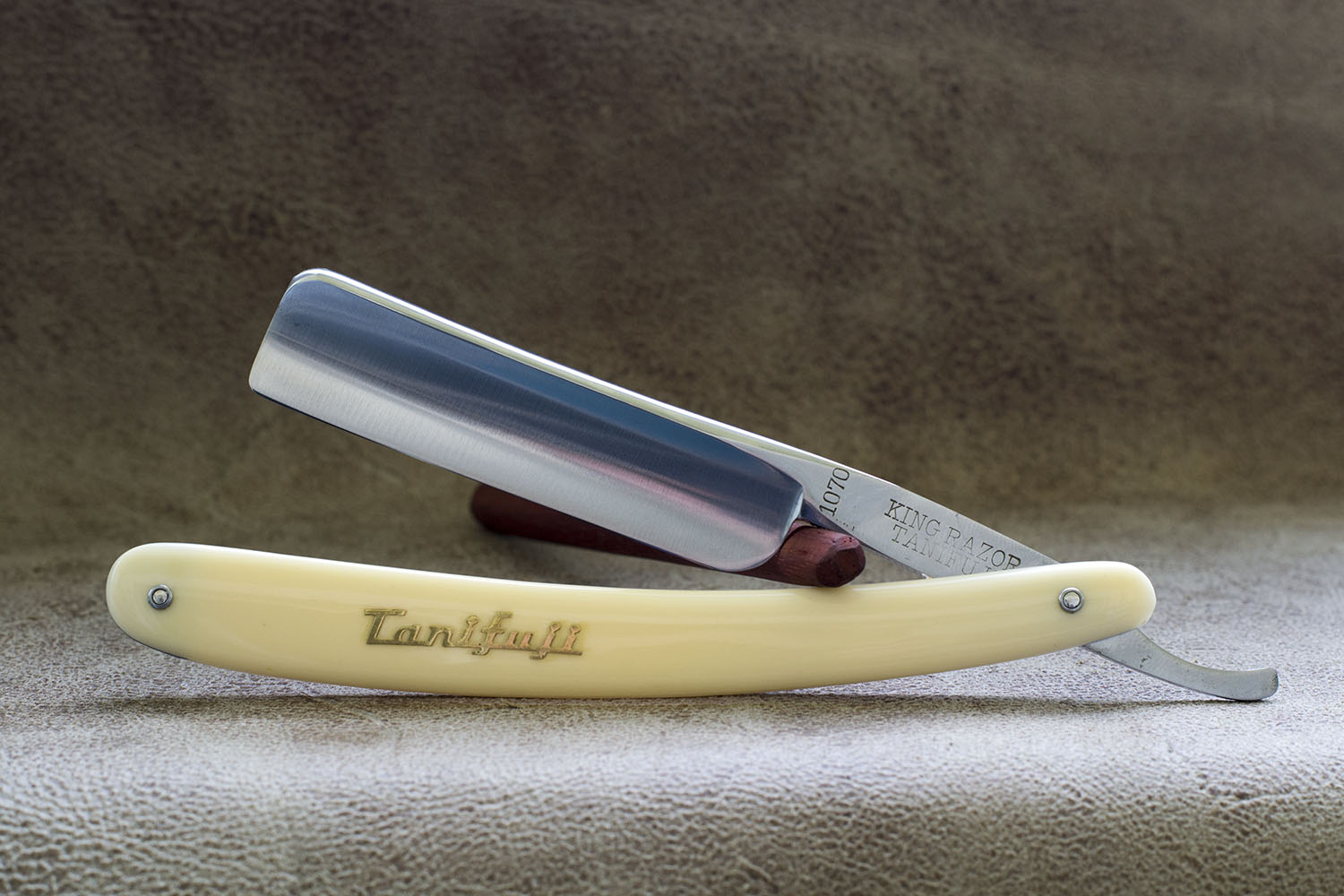 Японская бритва, предположительно середины 20 века. Танифуджи Фукутаро является одним из известнейших производителей японских бритв европейского стиля. Некоторые сведения о производителе http://britva.ru/forum/viewtop...f061b5190d7e034 Ширина 6/8, полная вогнутость, бритва заново отполирована и заточена мной впервые. Отличный вариант как для новичка, так и для коллекционера Продано Кинг Show ремень Show