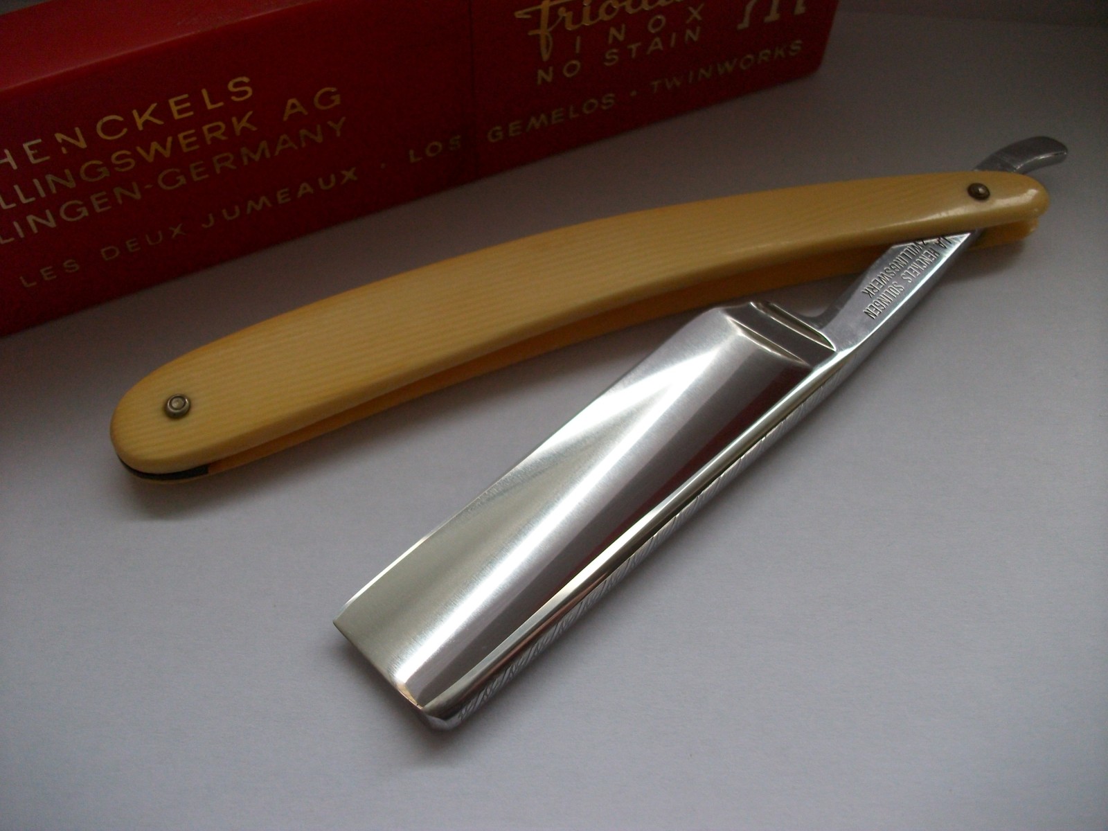 Состояние: Углеродистая сталь. Заточена и готова к бритью. При ширине полотна 14мм имеет очень массивный эрль и обушок, за счет этого в небольшой бритве чувствуется не присущая таким габаритам мощь. Цена: Продано Доставка включена. Spoiler Show