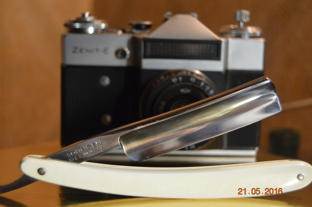 Все выставленные бритвы заточены на японских камнях, доводка на ремне без применения паст, проходят тест на рез волоса, ролики с тестом выкладывал множество раз в теме "Аукционы", бритье должно быть в удовольствие, к сожалению встречаю новичков бреющихся только по росту волос потому что бритва у них заточена агрессивно(любительски) и доставляет дискомфорт при бритье против роста, для продажи выставляю бритвы только с хорошей сохранностью и геометрией, никаких световых бликов и посторонних предметов поддерживающих бритву. При реставрации бритв руководствуюсь самым важным фактором - сохранить первоначальную форму. Если продается с пометкой "под восстановление" это значит что остались мелкие работы вроде полировки или недочеты с ручкой (подробности в личных сообщениях), заточку предпочитаю делать без изоленты - это практично(не надо будет наклеивать каждый раз при правке на ремне) но учту пожелания. При покупке бритвы стоимостью 5000р и дороже перешлю бесплатно.