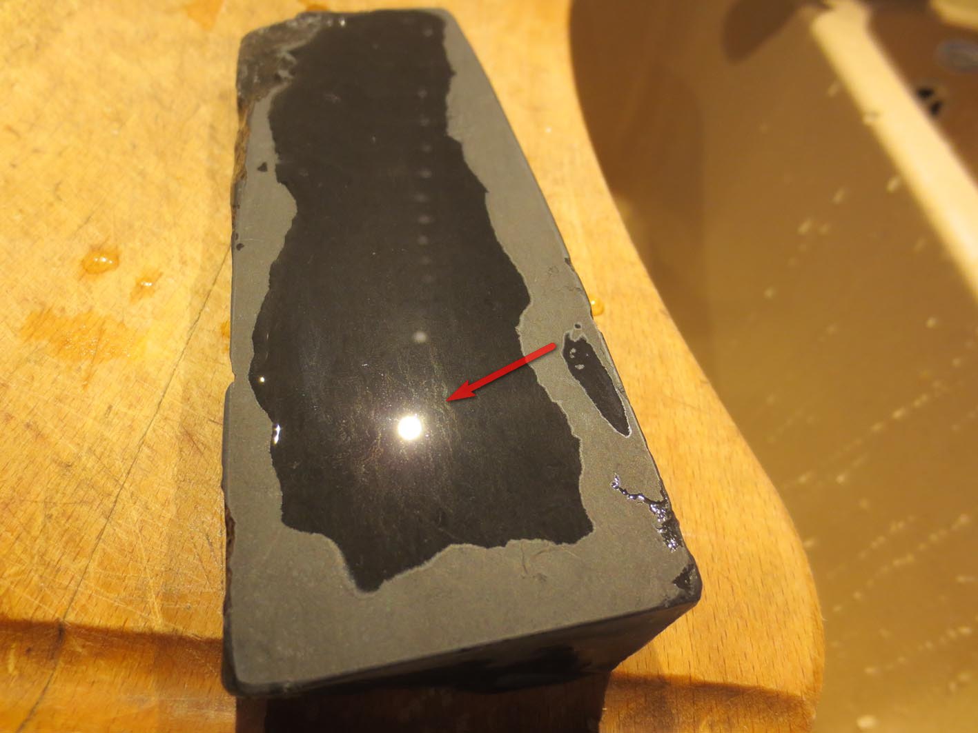 Ну и с водой, провел по камню кухонным ножом, остаются такие следы металла..