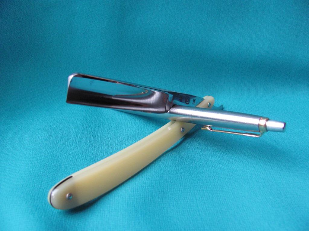 Параметры: бритва в эксплуатации не была, возраст вторая половина 20-го века, точилась мною впервые, состояние отличное, бритва приятная во всех отношениях. Ширина 11/16 ( 17 мм, обух 4.5мм), ручка целлулоид, родной домик в комплекте. Заточена и готова к бритью. Продано 78 Show