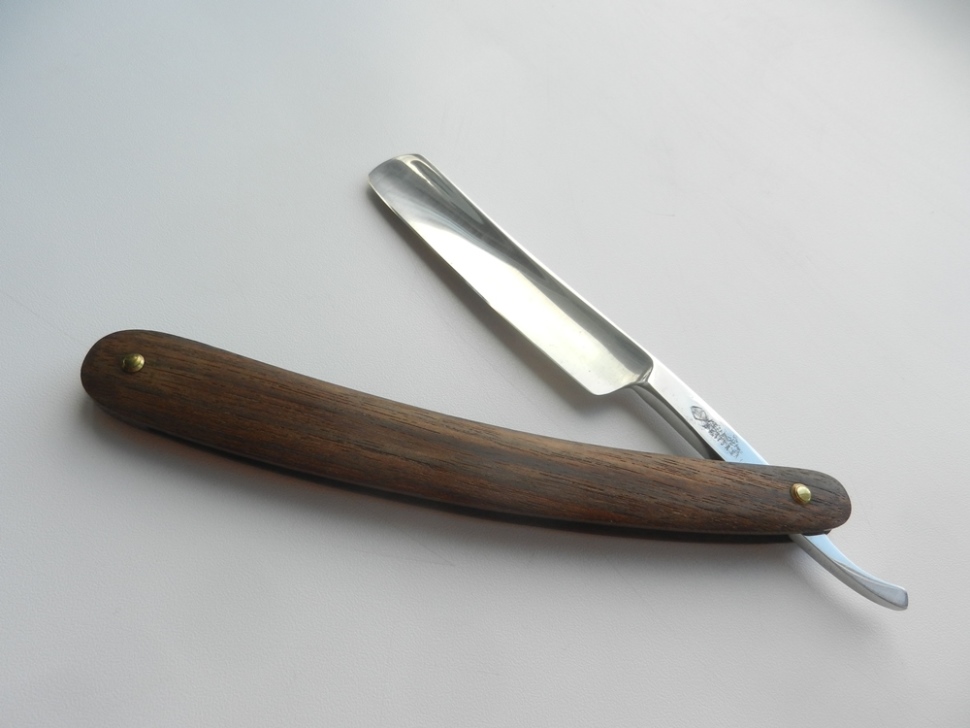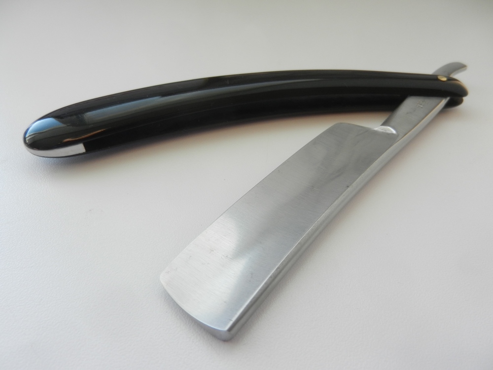 Работа примечательна для меня двумя вещами. Первое - при чистке клинка откололся кончик полотна (видно на фото ДО, самый кончик отличается от всего полотна, именно он и откололся). Пришлось укоротить полотно на 5 мм, так же пропорционально укоротил ручку и вклеил пластиковый белый клинышек. Второе - бритву полностью разбирал, чистил. Новые заклепки - моих рук дело, удалось приблизиться к оригиналу, т.е. заклепать без наружных шайб. Клинок в оправе сидит ровно, не болтается. Очень понравилось работать с этой бритвой в плане нового опыта ДО Spoiler Show Spoiler Show