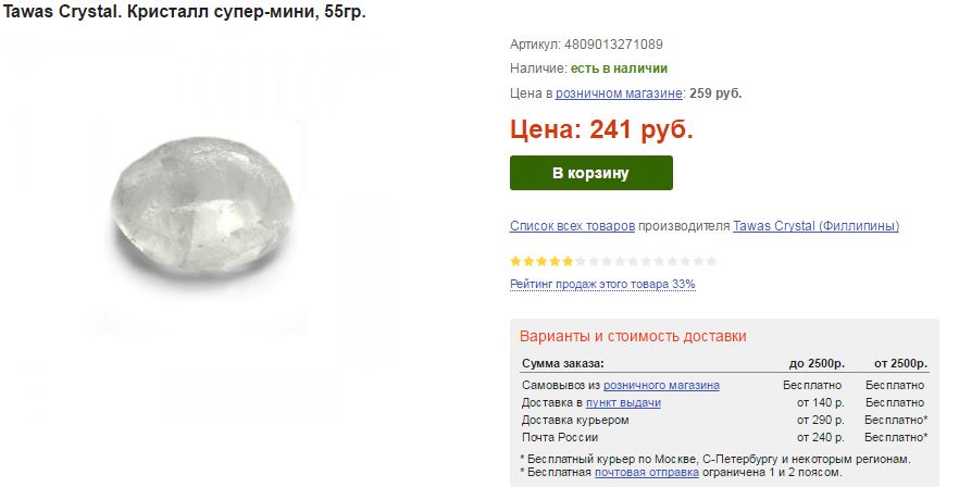 Re: Камень для остановки крови (Алюмокалиевые квасцы)В том то и дело, что здесь нет необходимости ждать месяц как из китая. А цена примерно та же