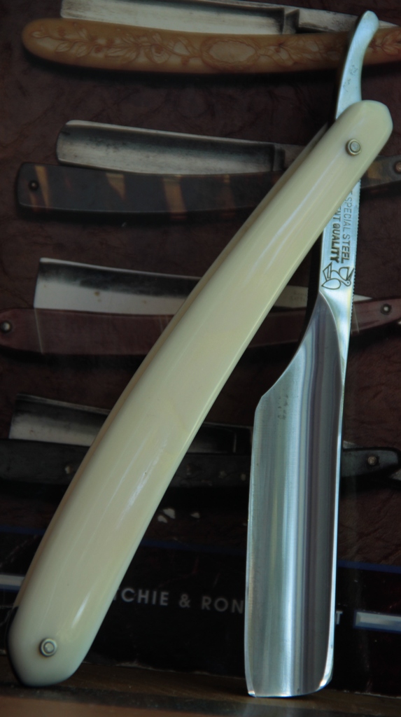 Бритва имеет толстый обушок, в связи с чем бритва несколько тяжелее своих собратьев такого размера. Из за своего веса и толстого обушка, бритва очень хорошо и легко точится без особого давления на кромку.Всё делается практически под собственным весом. Бритьё бритвой с таким полотном приближается к эталонному(ИМХО, конечно). Сталь здесь очень качественная, без каких либо проблем.Бритва совершенно непользованная.Всё оригинальное и ничего не разбиралось и не ремонтировалось. Полотно намертво впрессовано в обух. Бритва будет заточена впервые и подготовлена к бритью.