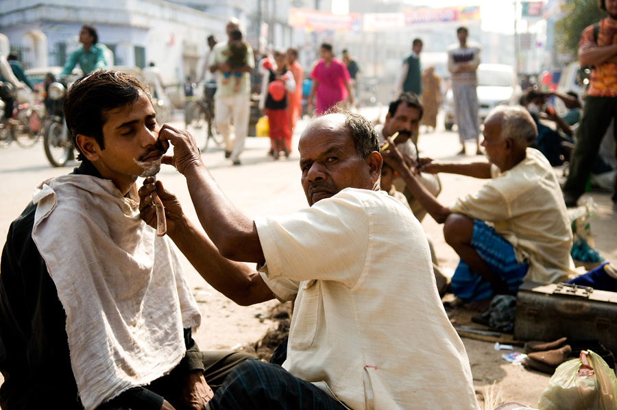 Re: Интересные фотоЧто бы как то разрядить обстановку. В Индии повсеместно встречаются уличные парикмахеры и брадобреи. Вешают зеркало на улице прямо на заборе и ставят стул. Клиент садится и его бреют опасной бритвой. Этот же сидел прямо на краю дороги в центре города.