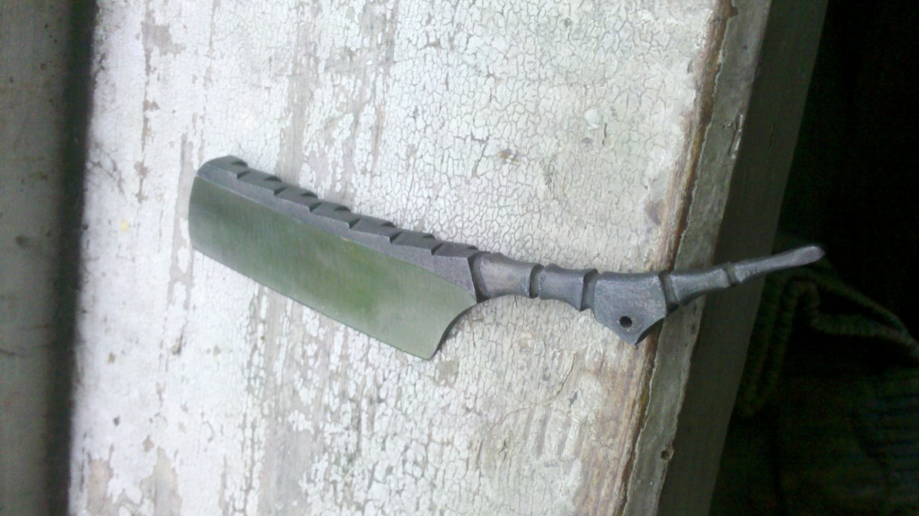 Re: Мечтаю изготовить бритвуРучка запланирована не на коленке (уголок треугольный), а ближе к полотну. Хвостик будет подлиннее?