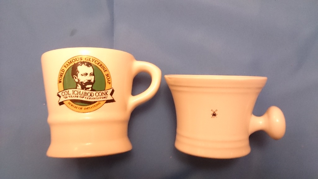 Ремень. Я думаю многие встречали ремни компании Illinois razor strop Chicago, попадаются они на всех торговых площадках посвящённых "влажному бритью". В принципе логично, цена на ремни штата Иллинойс невысока (в районе 40 долларов) да и по качеству их можно отнести к группе товаров широкого потребления. Я заметил что в русско-говорящем сообществе любителей бритья клинковой бритвой как правило первым (и основным) становится ремень фирмы, компании..? Вообще то на этих немецких(?) ремнях может быть написано что угодно, и DOVO и DORKO и Boker и Muhle, даже Exporter solingen. Надеюсь вы поняли о каких ремнях идёт речь, если что, я приложил фото. В общем у нас (у кого это, у нас? Может ты ещё и в "этой стране" живешь?) основными ремнями яв-ся немцы "И вашим и нашим", а у западного сегмента первым ремнём как правило становится Chicago Illinois. Вот и я решил приобщиться, уж больно вид у него завлекательный, прям как в старых барбершопах, широкий, тёмно-алого цвета, с глянцевой поверхностью, в общем полная противоположность моим предыдущим ремням. Но ближе к делу. Главный плюс этого ремня что он работает, я не могу точно сказать насколько хорошо он правит, лучше или хуже моего основного ремня, он просто правит и всё. И я доволен результатом. Может быть это за счёт его глянцевой поверхности, не зеркало конечно, но очень похоже на мой основной ремень, кстати у него эффект глянца появился только после выработки, на неюзанном ремне поверхность была матовая, как будто припудренная. Длина рабочей части 44 см, ширина 6.4 см. Я заказал модель без ручки, так как не владею информацией о качестве прошивки, оторвётся - останутся некрасивые дырки от ниток на коже. Особо хочу отметить возможность разборки ремня, благодаря этому я отделил льняную стропу (надпись на стропе из ткани Linen) дабы совершить так называемый break in, в силу скудности словарного запаса, русский эквивалент этому термину подобрать не могу. Ну, наверно можно сказать что стропу из льна надо "разбить", уработать, так как поставляется она твёрдой как доска (нет, серьёзно, кожаная сторона была эластичней чем лён!). Так что на фото ремень только с кожей, льняная часть отмакает (и периодически отбивается). Из косяков, на обратной стороне кожи имеется трещина, на рабочей поверхности с левой стороны какие-то пятнышки на пол тона темнее цвета самой кожи (см. фото). На работоспособности это никак не сказывается, если будете брать подобный ремень, желательно повертеть в руках. Помазок. Под стать ремню я взял "барберский" помазок. От помазков домашнего использования парикмахерские отличают длинная ручка и невозможность стоять щетиной вверх (я сделал сравнительное фото с типичным представителем семейства "ванных помазков"), впрочем это я так определил для себя помазок цирюльника, не принимайте мои слова за истину. Я уже покупал вариацию на тему "помазок из барбершопа", ей стала кисть Omega 10098. Новый помазок сделан скорее всего китайцами по заказу компании Colonel Conk (полковник Конк). Рукоять лакированое дерево, щетина барсук, "гнездо" щетины из странного пластика. больше напоминающего твёрдую резину. Запах нового барсука специфический, впрочем после трёх-четырёх промываний туалетным мылом он почти исчезает. Щетина у помазка полковника ОЧЕНЬ мягкая, как кисть для рисования, не скажу что это плохо, мой отец например очень уважает мягкие помазки, но конкретно этим я могу бр