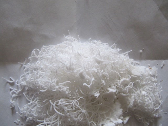 натёр на мелкой тёрке, только порошка не получилось, получились вот какие белые турецкие кудряшки