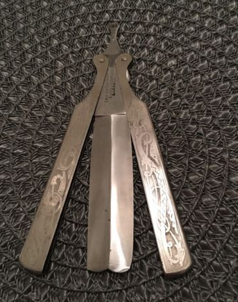 Re: Ebay, avito, etc. Аукционы на бритвенные темы.Бритва-балисонг. Круто. Если не бриться, так хоть гопников пугать.