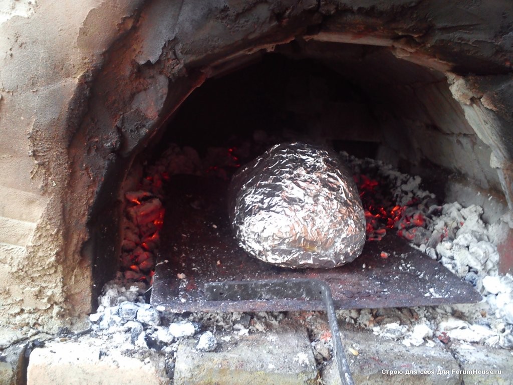 Re: Как и что мы едим и пьёмДа все просто. Подглядел у родственников бывшей жены в Башкирии. Парни весь день в поле тянут газопровод. Дошираки-бутерброды-сало надоели. Бралась труба 300мм в диаметре (размеры примерные), длиной 500-600-700мм. С одной стороны заварена, с другой крышка. Внутрь вставляется противень (корыто) из нержавейки (часто у медиков тырили биксы). Стоит углами в трубе. Все на костре, углями можно засыпать. Короче суть - духовка в поле.