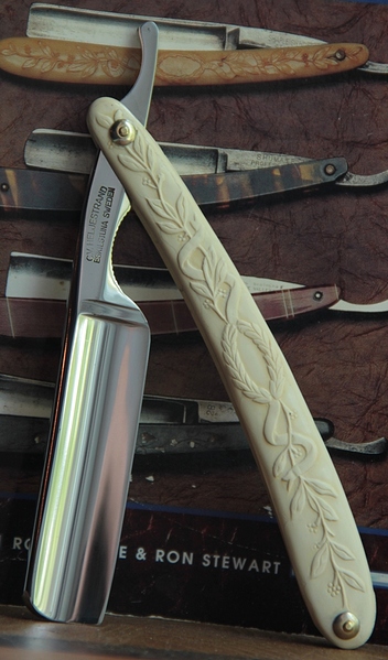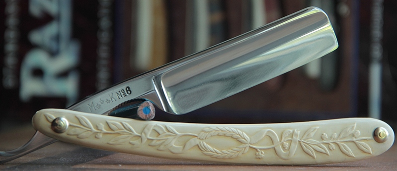 Бритва имеет толстый обушок, в связи с чем бритва несколько тяжелее своих собратьев такого размера. Из за своего веса и толстого обушка, бритва очень хорошо и легко точится без особого давления на кромку.Всё делается практически под собственным весом. Бритьё бритвой с таким полотном приближается к эталонному(ИМХО, конечно). Сталь здесь очень качественная, без каких либо проблем.Бритва совершенно непользованная.Всё оригинальное и ничего не разбиралось и не ремонтировалось. Полотно намертво впрессовано в обух. Бритва будет заточена впервые и подготовлена к бритью.