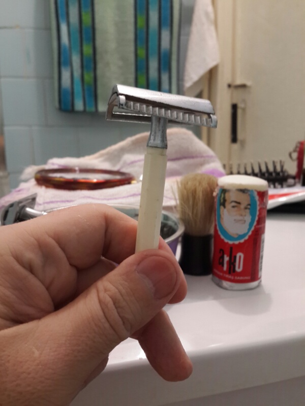Попробовав я понял, что EJ89 это просто детский сад какой-то. Никак не мог им чисто выбраться, да и порезаться ни разу толком не получилось. Мой неизвестный привет из прошлого корчует любую щетину на УРА! Понял, что мне не хватает в моем англичанине агрессивности в бритье. Вот и сам станок, кстати.
