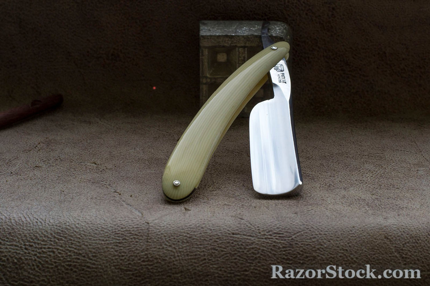 Бритва по всей видимости не была в использовании. Полотно в отличном состоянии, за исключением небольшого пятнышка окисления возле обушка. Нарядная пластиковая оправа, бритва не разбиралась и не ремонтировалась. Ширина 6/8, заточена и готова к бритью. Продано. Spoiler Show