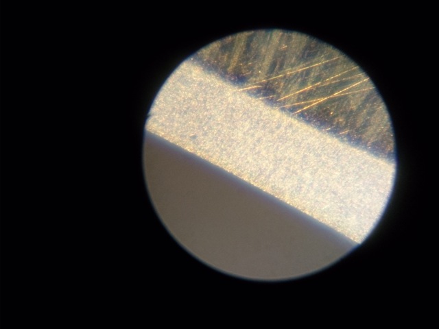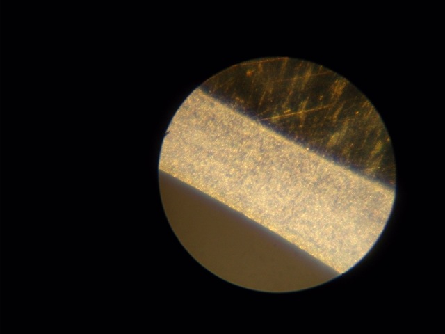 (ERN (серебрянная сталь)), делюсь сокровенным так сказать, для себя делал. Для начала кромка после Coticule Selected, не суспензия, чистый камень с водой. Увеличение 100х, и уточняю для любителей кидаться тапками, увеличение 100х, это то, что написано на моем совдеповском детском микроскопике, а то начнется это не 100 кратное увеличение и прочее ни кому не нужное бла, бла , бла. Spoiler Show Увеличение 200х Для просмотра фотографий нажмите на "+ Скрытый текст", это снова для, ну вы поняли Spoiler Show Увеличение 100х Spoiler Show Spoiler Show Увеличение 100х Spoiler Show Spoiler Show Re: Продаётся от Veselchak85 (природные камни и карбид кремния) Выбранные, пишу не от того, что дофига грит будут выдавать, а потому что однородные, соответственно, более высокого качества. С уважением, Андрей.