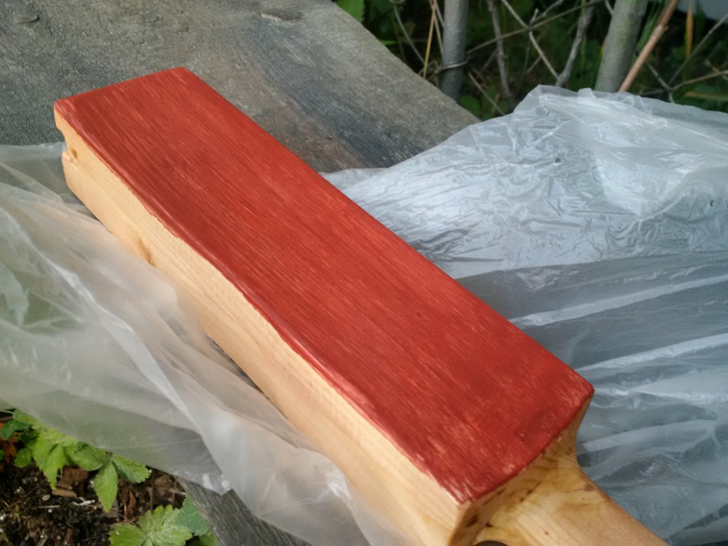 Липы под рукой не оказалось, осину не реально было зашкурить до идеального состояния. Остановился на сосне (влажность, по ощущениям, не более 15%) рубанок-шкурка-болгарка-шкурки Show косяк Show На второй раз настрогал мелко брусок Диалюкса, растворил в бензине для зажигалок. "Покрасил" борд. После высыхания опять получилась глянцевая поверхность. Так и должно быть? так получилось Show